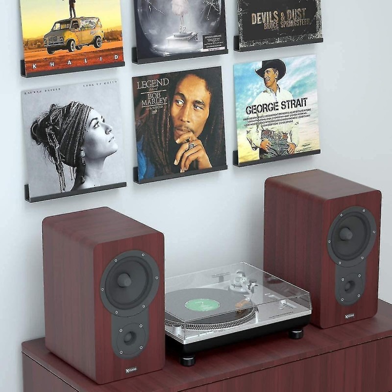 Mit der schnell zugänglichen, wandmontierten Vinyl-Displayeinheit können Sie ganz einfach Ihr Lieblingsalbum anhören.