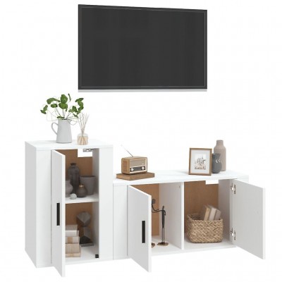 vidaXL 2-teilig. Weißer TV-Ständer? Holzmaterial