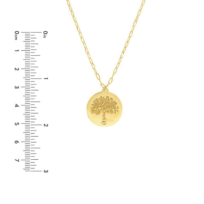 Verstellbare Halskette mit Medaillon-Anhänger „Lebensbaum“ aus 14 Karat Gelbgold mit 0,015 Karat Diamanten – 55,9 cm – in 14 Karat Gelbgold – Schmuckschatulle als Geschenk enthalten ::: ::: [Pflege und Handhabung: Diamant] – Mit warmem Seifenwasser und einer weichen Bürste oder einem Tuch reinigen. :::