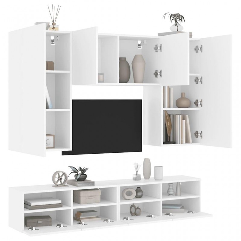 Um zusätzlichen Stauraum in Ihrem Wohnraum zu schaffen und für Ordnung zu sorgen, bieten diese TV-Wohnwände eine perfekte Lösung. Robustes Material: Holz ist ein Werkstoff von außergewöhnlicher Qualität mit glatter Oberfläche, der sich durch seine Festigkeit, Stabilität und Feuchtigkeitsresistenz auszeichnet. Wandmontage: Der TV-Ständer kann an der Wand montiert werden, um zusätzlichen Stauraum zu schaffen. So nutzen Sie Ihre Stellfläche optimal aus und sorgen für Ordnung in Ihrem Zimmer: Das wandmontierte TV-Schrank-Set bietet zahlreiche Ablagemöglichkeiten und viel Platz, um Bücher, DVDs, Zeitschriften, Medien und andere Alltagsgegenstände übersichtlich und ordentlich aufzubewahren. griffbereit aufbewahrt. Vielseitiges Design: Sie können den Schrank als TV-Ständer verwenden oder ihn zur einfachen Aufbewahrung von Utensilien oder anderen Gegenständen an der Wand in Ihrem Büro montieren. Außerdem verwandelt es eine leere Wand sofort in ein Designelement. Gut zu wissen: Schrauben und Dübel für die Innenwand sind nicht im Lieferumfang enthalten. Wir empfehlen Ihnen, Schrauben und Dübel zu finden und zu verwenden, die speziell für Ihre Wände entwickelt wurden. Bei Fragen können Sie sich an einen Fachmann wenden. Bitte lesen und befolgen Sie jeden Schritt der Anleitung.