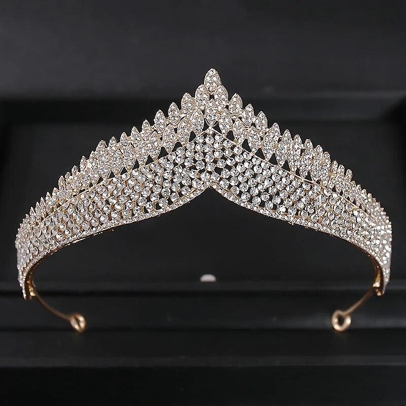 Luxuriöse goldfarbene Hochzeitsdiademe und -kronen mit Kristallen und Strasssteinen für Partys