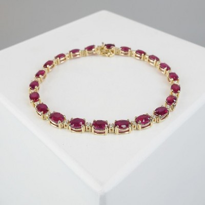 Marke: Christian Material: 14 Karat (585) Gelbgold ??Serie: Christian Bracelet Collection ? Schmuckart: Armband? Edelsteine: Rubine und Diamanten? Rubin: 14,42 ct (natürlich) ? Farbe: Intensive Farbe? Abmessungen: 6 x 4 mm ? Diamant: Brillantschliff 0,27 ct. Farbe: G? Klarheit: VSI? Länge: 18? Zentimeter? Breite: 4 mm? Schloss: Kofferschloss (mit 2 Sicherungskerben)? Dichte: U-förmiger Feststoff? Garantie: 2 Jahre? An: Damen? EAN: 8719878015345 Dieses Schmuckstück ist auf der Website nicht zu finden. Nur online verfügbar. Möglichkeit der Verlängerung und Verkürzung. Für weitere Informationen rufen Sie uns bitte an oder senden Sie uns eine E-Mail.